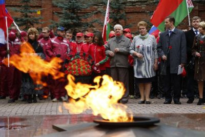 Участники акции почтили память павших, возложив цветы к Вечному огню.