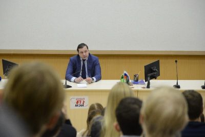 Затем Губернатор Алексей Островский встретился со студентами и ответил на их вопросы.