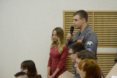 Началась беседа с «профессиональных» вопросов. В частности, студентов интересовала возможность практического применения собственных научных разработок не только в стенах учебного заведения, но и на предприятиях региона. Молодые ученые более года занимаются разработкой биокомпозитных материалов и сотрудничают со Смоленским композитным кластером, который создан при поддержке Администрации области. В этом направлении у них уже имеются определенные успехи – например, первое место на региональном конкурсе по применению биокомпозитов на предприятиях Смоленской области. В настоящий момент они пытаются реализовать данную идею на АО «Авангард». Безусловно, будущих специалистов волнует развитие данного инновационного направления на территории региона.