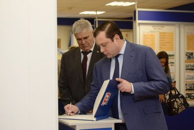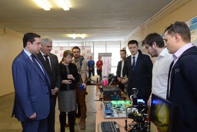 Свой визит глава региона начал с посещения музея истории ВУЗа, где оставил запись в Книге почетных гостей, а также пообщался с молодыми учеными, которые представили ему свои инновационные разработки. Среди них - установка для проведения быстрых медицинских тестов, мобильная энергоустановка, способная обеспечить, например, бесперебойную работу стиральной машины в течение шести часов, стеклоомывающая жидкость с использованием борщевика и др.