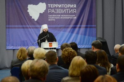 В свою очередь, митрополит Смоленский и Рославльский Исидор, приветствуя участников форума, отметил: «То, что сегодня власть несет огромную ответственность за социальную сферу нашего региона, это невероятный подвиг. И я Вас благодарю, Алексей Владимирович, за то, что Вы отстаиваете не свои интересы, не интересы представителей власти, региональной и муниципальной, а интересы каждого человека, живущего в нашем регионе, в том, чтобы он, по возможности, жил как можно лучше. И то, что Вы отстояли и отстаиваете необходимость региональной финансовой поддержки каждому жителю, живущему здесь, это и смело, и является показателем того, как лично Вы относитесь к своим обязанностям Губернатора и какое у Вас лично отношение к Смоленщине, которая стала для Вас, я в этом убежден, родной. Спасибо Вам за это.