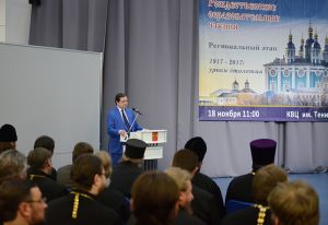 В своем выступлении Губернатор Алексей Островский акцентировал особое внимание на теме Рождественских Чтений - «1917 – 2017: уроки столетия»: «Очень правильно, что было принято решение посвятить очередные Рождественские чтения именно этой теме. Крайне важно говорить о ней каждый день, потому что столетие прошло, столетие в определенном смысле страшное, а уроки из этого человечество, к сожалению, не извлекло. Каждый день, включая телевизор, читая новости, мы видим конфликты и столкновения цивилизаций и религий, братоубийственные войны, гибель десятков тысяч ни в чем не повинных людей, видим продолжающиеся государственные перевороты, и понимаем, что человечество осознанно все дальше и дальше подталкивает себя и весь мир к катастрофе. Поэтому я очень благодарен Русской Православной Церкви, вам, дорогие Владыки, за стремление духовно объединить людей, заставить их задуматься о событиях минувшего столетия, постараться избежать повторения ошибок прошлого».