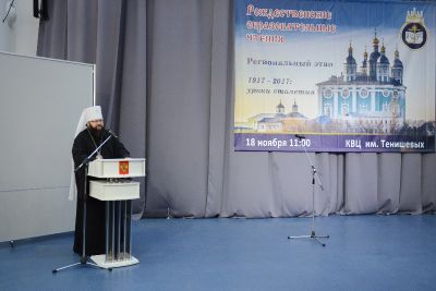 В Культурно-выставочном центре имени Тенишевых состоялась церемония закрытия образовательных Рождественских Чтений Смоленской области. 25-ый, юбилейный, церковно-государственный форум, организованный Смоленской митрополией и Администрацией области, был посвящен судьбоносной теме: «1917 – 2017: уроки столетия».