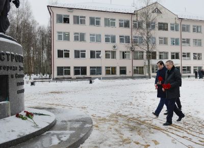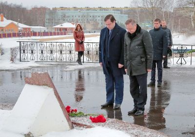 Александр Беглов и Алексей Островский возложили цветы к Кургану Славы и к памятнику первостроителям города Десногорска и Смоленской АЭС. В свое время с инициативой установки памятника выступили общественные организации города. Интересно, что варианты проектов памятника были подготовлены с учетом пожеланий первостроителей, а окончательный выбор посредством голосования сделали десногорцы.