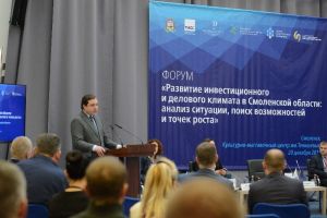 Губернатор Алексей Островский принял участие в работе форума «Развитие инвестиционного и делового климата в Смоленской области: анализ ситуации, поиск возможностей и точек роста». Основная цель форума - проанализировать наиболее актуальные проблемные вопросы, стоящие перед регионом в части развития инвестиционного и делового климата и вместе с федеральными и региональными экспертами и бизнесом выработать эффективные подходы для успешного развития в будущем.