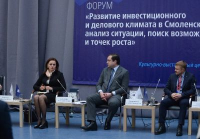 Вице-президент «Деловой России» Елена Бочерова в ходе своего выступления отметила, что Смоленская область - перспективная территория в вопросе создания комфортного инвестиционного климата. Комментируя выступление главы региона, она отметила: «Позиция Губернатора вызывает у меня очень глубокое уважение. Мы должны обозначать наши задачи как параллельные в постоянном прямом и честном диалоге с Губернатором, действующими институтами развития бизнеса, бизнес-ассоциациями».