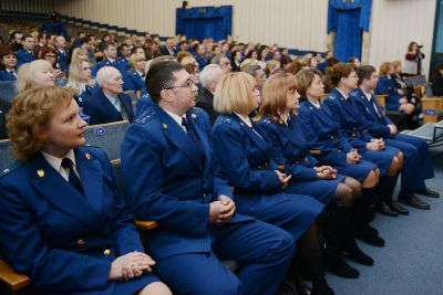 Со словами приветствия к сотрудникам органов прокуратуры обратился Губернатор: «На протяжении своей почти трехвековой истории ваше ведомство без преувеличения было и остается главным правоохранительным и правозащитным органом государства. Защита интересов страны и каждого гражданина – вот два основополагающих принципа, которых всегда придерживались прокурорские работники. Именно на вас главой государства возложены такие важнейшие задачи как обеспечение защиты трудовых и социальных прав соотечественников, охрана и поддержка прав детей, сохранность государственных финансовых и материальных ресурсов».