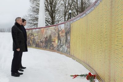 В начале визита Александр Беглов и Алексей Островский возложили цветы к памятнику Неизвестному Солдату и мемориальной стене на Валу Победы.