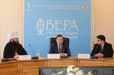 В Администрации региона прошел брифинг, посвященный началу вещания православного канала «Радио «ВЕРА» в областном центре. На вопросы журналистов ответили Губернатор Алексей Островский, митрополит Смоленский и Рославльский Исидор, директор информационного центра радиовещания, искусства и культуры «Вера, надежда, любовь» Роман Торгашин.