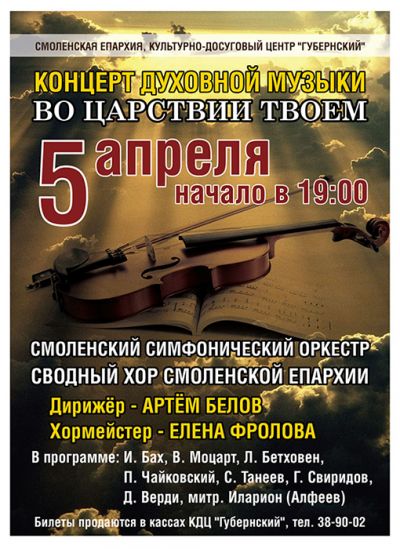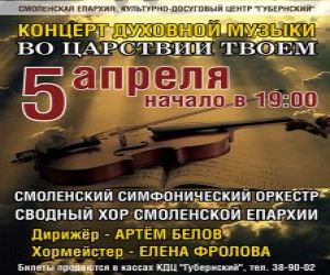 По благословению митрополита Смоленского и Рославльского Исидора 5 апреля в культурно-досуговом центре «Губернский» состоится ежегодный Великопостный концерт классической и духовной музыки «Во Царствии Твоем…».