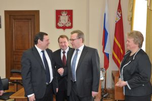 В региональной Администрации состоялась рабочая встреча заместителя Губернатора Александра Долгова с Иваном Щербо, в ходе которой стороны обсудили дальнейшие перспективы взаимовыгодного сотрудничества нашей области с белорусскими партнерами, в частности – в промышленной сфере.