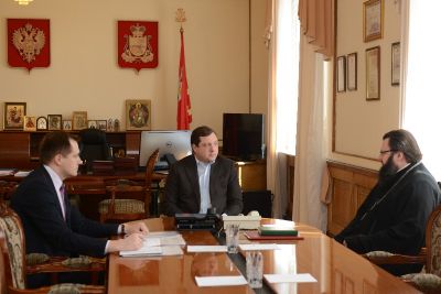 Губернатор Алексей Островский провел встречу с митрополитом Смоленским и Рославльским Исидором и директором Лицея имени Кирилла и Мефодия Дмитрием Борисовым, на которой обсудил вопросы, связанные с деятельностью Смоленского отделения Всемирного Русского Народного Собора.