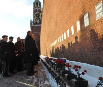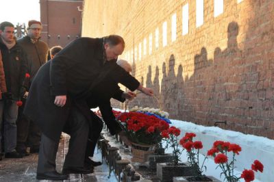 Более ста представителей ветеранских и молодежных организаций, органов исполнительной власти Смоленской области, Гагаринского района и города Гагарина ранним утром 27 марта возложили цветы к могиле первого космонавта у Кремлевской стены.