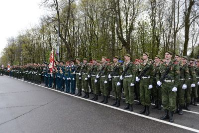 Командовал парадом заместитель начальника Военной академии войсковой противовоздушной обороны ВС РФ имени Маршала Советского Союза А.М. Василевского по работе с личным составом полковник Игорь Стахович. Принимал парад заместитель начальника Смоленского территориального гарнизона, заместитель начальника Военной академии, кавалер ордена «За военные заслуги» и медали ордена «За заслуги перед Отечеством» полковник Борис Новиков.