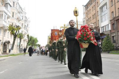 После Божественной литургии в Свято-Успенском кафедральном соборе состоялся Крестный ход по улицам города к мемориальной доске святым равноапостольным Кириллу и Мефодию. Вместе со священнослужителями, прихожанами смоленских храмов, представителями общественных организаций, творческой интеллигенции, учащимися и студентами участники Крестного хода возложили цветы к барельефу.