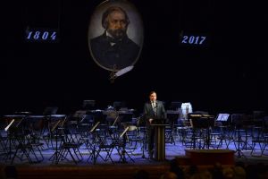 Далее с речью о великом русском композиторе Михаиле Ивановиче Глинке выступила заслуженный деятель искусств Российской Федерации, музыковед Жанна Дозорцева. По ее словам, гений такой величины мог родиться только на Смоленской земле: «Какое это счастье быть на Смоленщине, на этой святой земле! Она всегда была щитом и мечом России, дала миру столько славных имен, которыми мы по праву гордимся. Конечно, первое место среди всех этих выдающихся людей занимает Михаил Иванович Глинка».