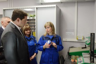 Губернатор побывал в лаборатории, где специалисты проверяют прочность тары, от герметичности которой напрямую зависит качество пищевой продукции, осмотрел производственные цеха и складские помещения.