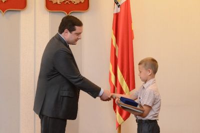 Глава региона вручил Даниилу Бахареву нагрудный знак «Горячее сердце» и диплом «За мужество, стойкость и героизм, проявленные при оказании помощи пострадавшим». «Тебе всего 9 лет, а ты уже настоящий герой. Ты проявил личное мужество и, рискуя собой, спас жизнь человека. Носи эту награду с гордостью, потому что ты заслужил ее своим подвигом», - напутствовал Алексей Островский.