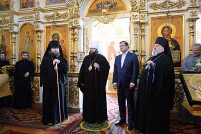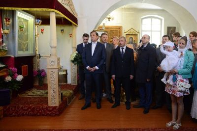 В начале своего визита Губернатор принял участие в Божественной литургии по случаю представления епископа Рославльского и Десногорского Мелетия. Торжественное богослужение прошло в Спасо-Преображенском мужском монастыре.