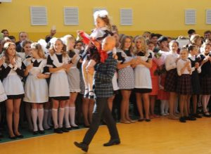 В День знаний в отремонтированном спортивном зале школы собрались учащиеся, педагоги и родители. Первые ряды заняли нарядные первоклассники с огромными букетами цветов. В этом году в средней школе №1 имени Героя Советского Союза Е.И. Стерина открыто два первых класса – за парты сели 56 первоклассников.
