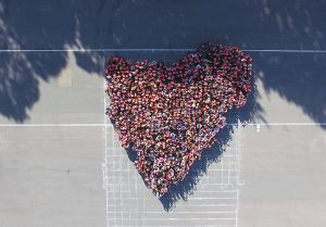 В патриотической акции приняли участие старшеклассники, студенты высших учебных заведений и профессиональных образовательных организаций. В руках ребят были листы цветного картона, которые они синхронно поднимали вверх, что позволяло создать объемное изображение. Сердце меняло цвет и даже пульсировало. Таким образом участники флешмоба признались в любви к своей малой родине.