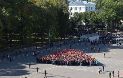 В рамках празднования 80-летия образования Смоленской области на главной площади столицы субъекта состоялся масштабный флэшмоб. Более 850 молодых людей из 67 образовательных организаций выстроились в форме сердца, наглядно напоминающего контур территории Смоленщины.