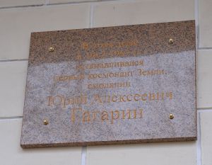 В Смоленске накануне празднования 50-летия первого полета человека в космос открыта мемориальная доска на здании, в котором во время своих визитов останавливался Юрий Гагарин.