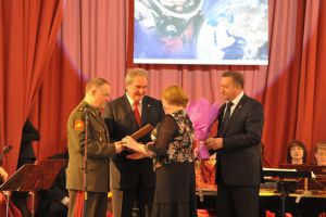 За многолетний добросовестный труд, большой вклад в развитие отечественного музейного дела и активную общественную деятельность Почетной грамоты Совета Федерации удостоена племянница Юрия Алексеевича Гагарина, заведующая мемориальным отделом Объединенного Мемориального музея Ю.А.Гагарина Тамара Дмитриевна Филатова. Также в этот день Сергей Антуфьев торжественно вручил со сцены концертного зала матерям Смоленщины Почетный знак «Материнская слава» имени Анны Тимофеевны Гагариной.
