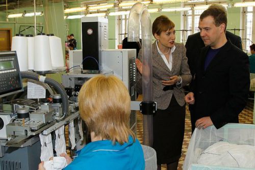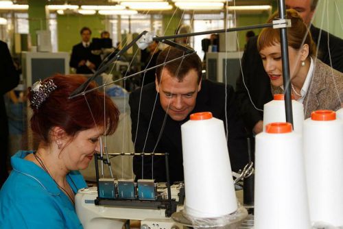 В ходе рабочей поездки в Смоленск Дмитрий Медведев посетил Смоленскую чулочную фабрику и побеседовал с сотрудниками предприятия.