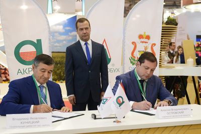 В рамках ведущего аграрного форума России – выставки «Золотая осень» – в присутствии Председателя Правительства Российской Федерации Дмитрия Медведева состоялось подписание Соглашения о намерениях между Администрацией Смоленской области и ПАО «Акрон» о сотрудничестве при реализации инвестиционного проекта «Производство сложных фосфорсодержащих минеральных удобрений на территории муниципального образования «Дорогобужский район» Смоленской области». Подписи под документом поставили Губернатор Алексей Островский и президент Группы «Акрон» Владимир Куницкий.