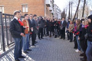 Сегодня цветы к отделению Посольства Республики Беларусь в Смоленске несут сотни смолян, представители молодежных и ветеранских общественных организаций.