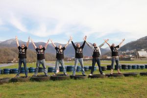 Студенты многих высших и средних учебных заведений, представители молодежных организаций на несколько минут выстроились в колонны в виде слова «ПОЕХАЛИ!».