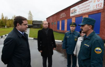 Губернатор ознакомился со специальной техникой, пожарно-техническим вооружением, а также осмотрел помещения пожарной части – учебный класс, комнату отдыха – и высоко оценил условия, созданные для личного состава.