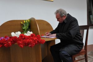 Губернатор Смоленской области Сергей Антуфьев оставил запись в книге соболезнований и возложил цветы у отделения посольства Республики Беларусь в Смоленске.