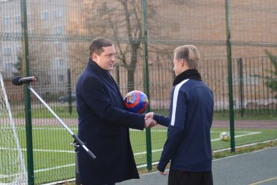 Качество спортивной площадки ребята оценили в этот же день: на обновленном футбольном поле состоялся первый матч в рамках соревнований среди общеобразовательных школ города, перед началом которого глава региона вручил мяч лучшему игроку Всероссийского футбольного турнира 2016 года «Первенство Черноземья», чемпиону второй Смоленской футбольной лиги, ученику средней школы №1 Артему Кузнецову. Именно этим мячом ребята будут играть во время соревнований.