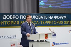 В завершение своего выступления Губернатор дал старт Всероссийскому форуму «Территория бизнеса – территория жизни», организованному при поддержке Администрации области, Общероссийской общественной организации малого и среднего предпринимательства «ОПОРА РОССИИ» и Агентства стратегических инициатив по продвижению новых проектов. Его основная цель – способствовать созданию и развитию благоприятного предпринимательского и инвестиционного климата, популяризации успешных предпринимательских и муниципальных практик. Также в рамках форума прошел первый региональный этап Национальной премии «Бизнес-Успех».
