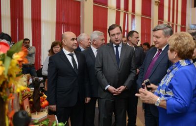 Алексей Островский и Николай Овсиенко осмотрели выставку, где были представлены изделия мастеров декоративно-прикладного искусства, национальные костюмы, видеоролики об истории народов, блюда национальной кухни, книги, буклеты, газеты с информационными материалами о деятельности национальных объединений Смоленской области.