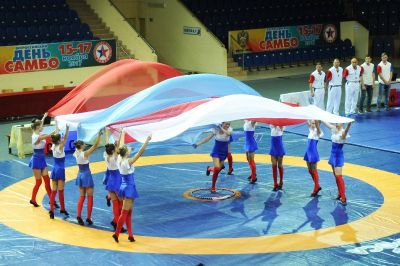 Торжественное открытие соревнований продолжилось спортивно-развлекательной программой, в рамках которой зрителям были представлены показательные выступления сильнейших спортсменов и спортивный номер с участием ветеранов самбо.