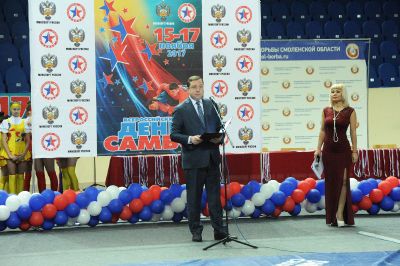 Обращаясь к спортсменам и болельщикам, глава региона отметил, что Президент страны Владимир Путин уделяет большое внимание самбо как национальному виду спорта России, уже получившему международное значение: «Выступая на заседании Совета по развитию физкультуры и спорта, глава государства призвал использовать все возможности для того, чтобы это популярное, зрелищное единоборство вошло в программу Олимпийских игр. Убежден, что внимание Президента, признание самбо на государственном уровне и успехи наших спортсменов на международных соревнованиях дадут новый импульс развитию этой спортивной дисциплины, в том числе, в Смоленской области».