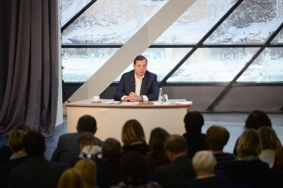 Журналисты районных изданий задавали Губернатору много вопросов, касающихся строительства и сдачи конкретных объектов социальной инфраструктуры, а также старались обозначить проблемные места. Так, главный редактор газеты «Сельская Новь» Валентина Державцева поинтересовались сроками перевода школ райцентра на односменный режим обучения и рассказала о необходимости строительства еще одного детского сада в муниципалитете.