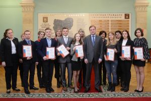 В продолжение торжественного мероприятия глава региона вручил лауреатам конкурса свидетельства о присуждении молодежной премии Администрации Смоленской области.