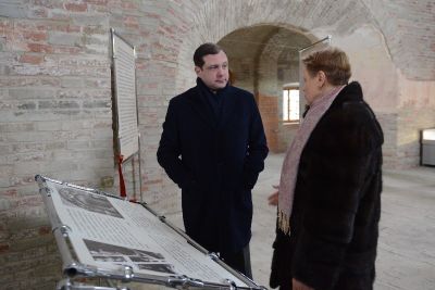 Далее Губернатор ознакомился с выставкой, размещенной в Храме Сошествия Святого Духа. Уникальные материалы экспозиции из фондов Смоленского музея-заповедника, представленные в виде копий на планшетах, знакомят посетителей с историей возведения и архитекторами Церкви Спаса. Проекты художников Михаила Александровича Врубеля и Сергея Васильевича Малютина, архитектора Владимира Васильевича Суслова позволяют проследить процесс формирования ее архитектурного облика. На выставке также представлены документы Консистории, публикации периодической печати конца XIX века – начала XX века, посвященные храму.