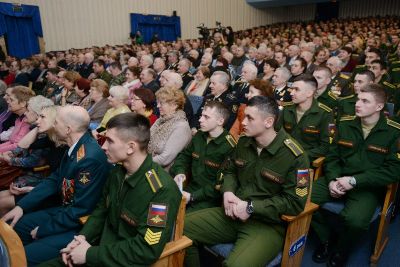 В культурно-досуговом центре «Губернский» состоялось торжественное собрание, посвященное Дню защитника Отечества и 100-летию со Дня образования Рабоче-крестьянской Красной Армии. В мероприятии приняли участие руководители органов исполнительной и законодательной власти региона, ветераны Великой Отечественной войны, Вооруженных Сил, военнослужащие Смоленского гарнизона и члены их семей, командиры войсковых частей, курсанты и слушатели Военной Академии, суворовцы, юнармейцы.