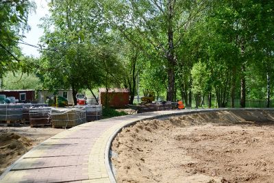 Кроме того, идет процесс возведения конструкций сцены и пункта проката. Также Максим Степанов рассказал, что в течение лета предстоит завершить благоустройство дорожек, установку лавочек, урн, фонарей, системы видеонаблюдения. Входные арки, площадка для выгула собак, места для семейного отдыха появятся в парке к моменту сдачи объекта.