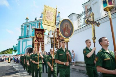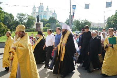 По окончании торжественной службы состоялся крестный ход на Владимирскую набережную, где у памятника святому князю Владимиру был совершен молебен Крестителю Руси. Стоит отметить, что для Смоленской Земли эта дата крайне значима и символична, ведь князь Владимир лично присутствовал при крещении смолян в 990 году. Кроме того, со Смоленщиной неразрывно связано и имя Предстоятеля Русской Православной церкви Патриарха Московского и всея Руси Кирилла, посвятившего практически четверть века неустанному служению на Смоленской кафедре.