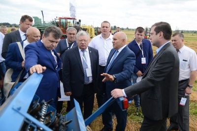 Далее Губернатор вместе с другими почетными участниками Всероссийского Дня льняного поля ознакомился с достижениями ведущих семеноводческих хозяйств Смоленской области, а также осмотрел выставку сортовых посевов льна-долгунца и современных агротехнологий. Образцы новейшего сельхозоборудования (механические сеялки, льноуброчные комбайны, льнотеребилки, самоходные льнооборачиватели и др.) представили более 50 российских и зарубежных компаний, в частности, французский холдинг DEHONDT TECHNOLOGIES DEVELOPPEMENT, крупнейшие российские заводы АО «Евротехника», АО «Петербургский тракторный завод», ООО «Комбайновый завод «Ростсельмаш», а также заводы Республики Беларусь - ОАО «Электромеханический завод», ОАО «Щучинский ремонтный завод», ОАО «БобруйскАгроМаш» и др.