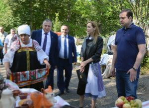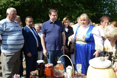 Далее Губернатор вместе с супругой посетил торговые ряды и подворья сельских поселений в парке «Граф Уваров», на которых холмжирковцы представили продукцию собственного производства, а также пообщался с жителями района.