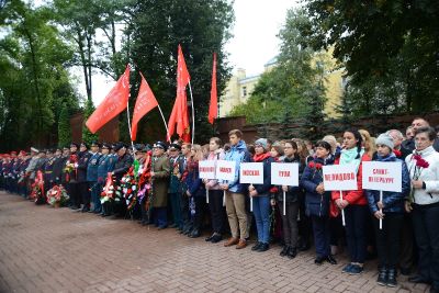 Руководство области и города, ветераны-фронтовики, труженики тыла, представители духовенства, общественных молодежных и ветеранских организаций, участники Международного слета школьников городов-героев России и Белоруссии пришли в Сквер Памяти Героев, чтобы почтить подвиг защитников Отечества и отдать дань уважения тем, кто освобождал наш край от фашистских оккупантов.