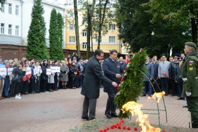 В областном центре у Вечного огня состоялся торжественный митинг, посвященный 75-летию освобождения Смоленщины от немецко-фашистских захватчиков. В мероприятии приняли участие Губернатор Алексей Островский, главный федеральный инспектор по Смоленской области Юрий Стрелецкий.