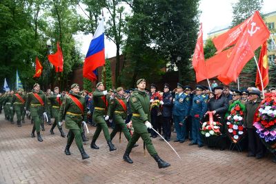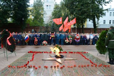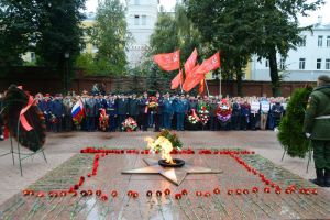 Участники мероприятия почтили память павших защитников Родины, освободителей Смоленщины от фашистских захватчиков Минутой молчания, возложили венки и цветы к Вечному Огню и могилам Героев у Крепостной стены.